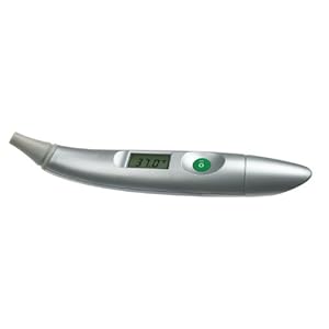 In nur 1 Sekunde misst dieses Thermometer die exakte Körpertemperatur mittels Infrarot. Das besondere an der Handhabung: Die Messung kann bequem und einfach im Ohr vorgenommen werden, was gerade bei Kleinkindern das Fieber messen erheblich erleichtert. Zum Beobachten der Temperatur-Entwicklung werden die letzten 12 Messungen gespeichert. Die praktische Displaybeleuchtung und der akustische Alarm bei Fieber-Temperaturen machen dieses Thermometer zusätzlich komfortabel. Das Verwenden von Schutzhüllen zur besseren Hygiene ist bei diesem Thermometer aufgrund des gekapselten Sensors nicht notwendig. Zusätzlich können mit diesem Thermometer folgende Messungen vorgenommen werden. Messung von Umgebungstemperatur, Flüssigkeiten und Oberflächen. Im Lieferumfang ist sowohl eine praktische Aufbewahrungstasche sowie eine Batterie CR 2032 enthalten.
